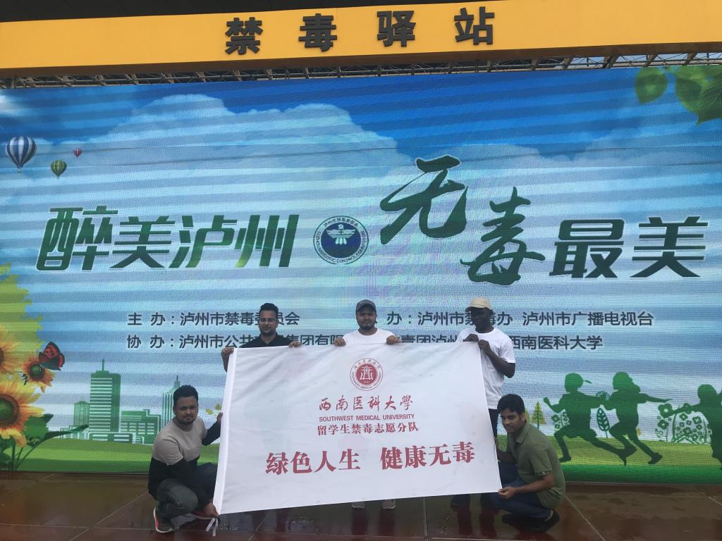 jdb电子留学生志愿者参加泸州市“醉美泸州 无毒最美”禁毒宣传活动