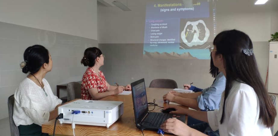 因受全球疫情影响,留学生教育本学期仍然以线上授课形式开展教育教学工作,主要使用“钉钉”“超星”等平台开展线上教学。通过线上全场参与肖秀丽教授在2019级临床医学课程直播钉钉群为留学生讲授的《病理学》;王瑶在2018级留学生临床医学院直播钉钉课讲授的《口腔医学》;吴蔚华教授在2017级留学生临床医学院直播钉钉课讲授的《内科学》等线上课程,充分了解到新学期开学留学生主讲教师线上授课情况、学生课堂出勤情况以及教学保障情况,留学生直播课程总体教学秩序井然有序。