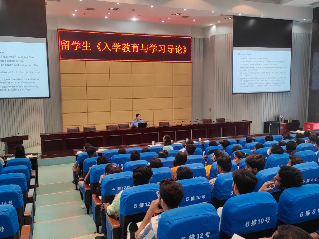 6月6日上午,受学校邀请,泸州市公安局出入境管理支队副支队长张军梅来校开展了中国国情教育讲座。讲座在城北校区第二学术报告厅进行,城北校区国际学生90余人,国际教育学院院领导、科教科、学生科国际学生辅导员参加了此次讲座。