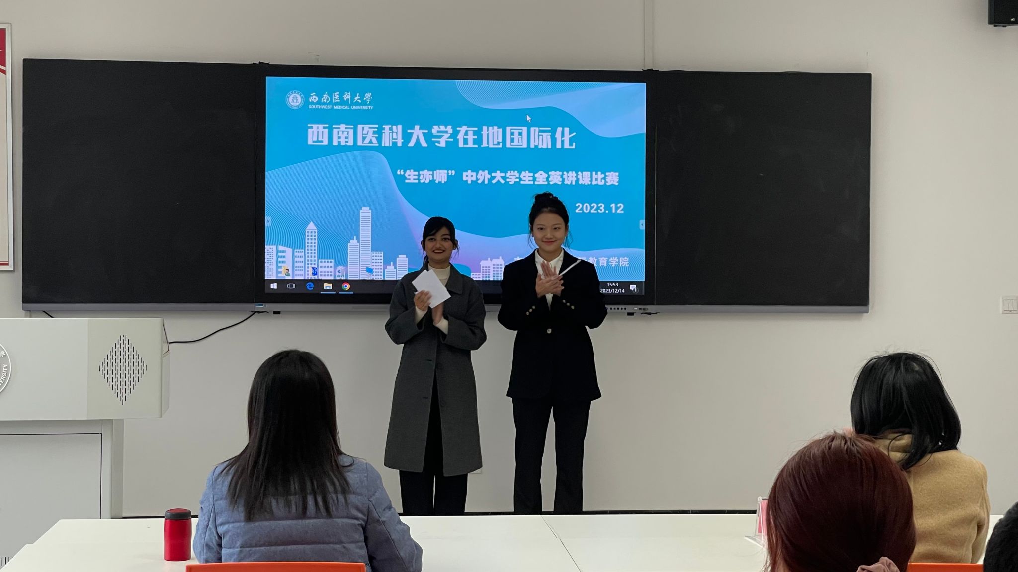 为贯彻落实习近平总书记关于推进高质量共建“一带一路”的重要讲话精神,持续构建学校“五位一体”国际医学人才培养体系,服务“一带一路”教育行动,12月13-14日,国际教育学院牵头组织了“jdb电子游戏官方网站在地国际化:‘生亦师’中外大学生全英讲课”预决赛。本次大赛吸引来自基础医学、临床医学、麻醉学系、护理学、来华留学临床医学等专业几十余名中外大学生同台竞技。