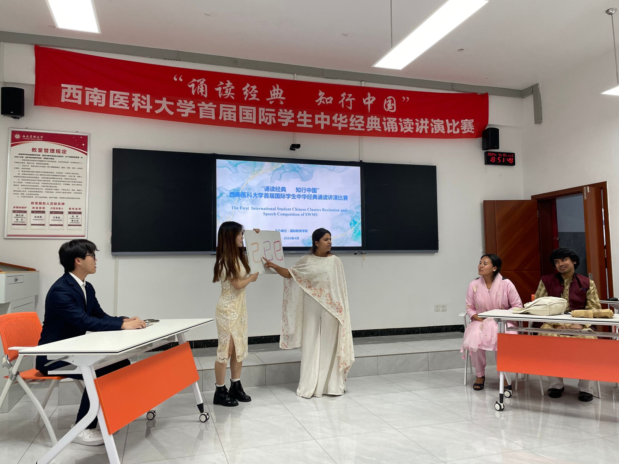 为践行习近平总书记“讲好中国故事,传播好中国声音”重要讲话精神,激发国际学生对汉语和汉语言文学的热爱,培养国际学生知华友华爱华情感,促进中外人文交流,4月12日晚,由国际教育学院主办的“‘诵读经典 知行中国’jdb电子游戏官方网站首届国际学生中华经典诵读讲演比赛”在文渊楼402教室举行。