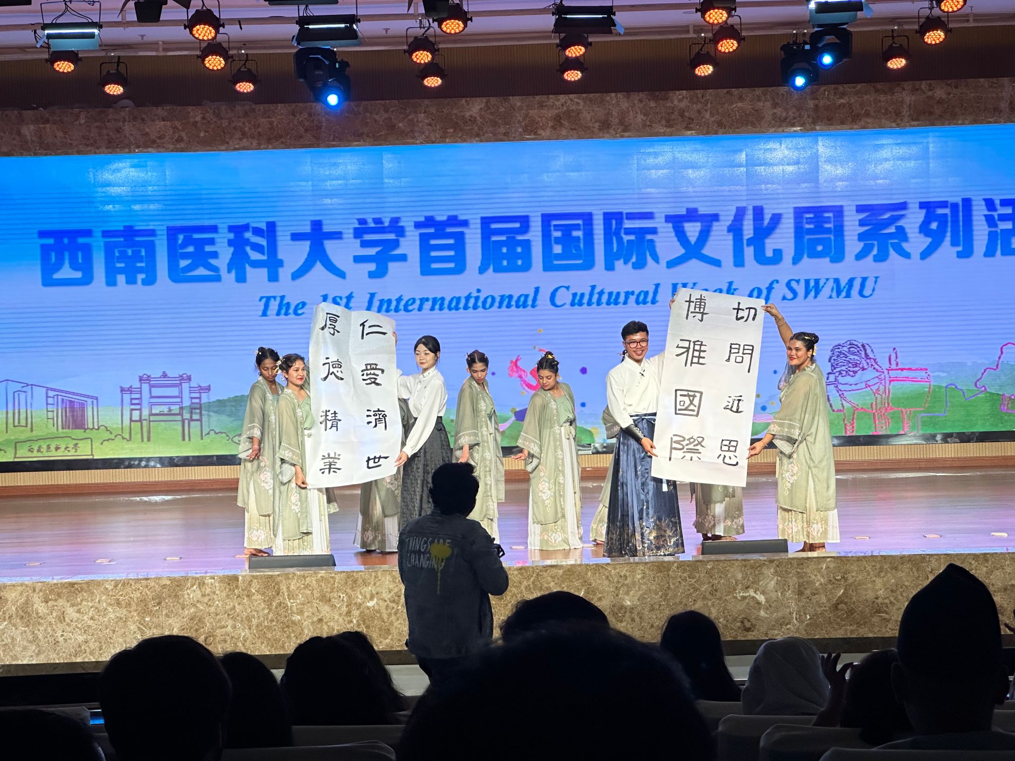 文艺汇演中,留学生们通过歌舞和走秀等节目形式展示了他们特有的热情、活力与才华。令人印象深刻的是,舞蹈《小船谣》将舞蹈和中国书法表演相结合,深刻表达了留学生对中国舞和书法的理解和热爱。一曲《月亮代表我的心》更是展示了留学生深厚的中文功底以及对中国文化的认同和喜爱。此外,留学生还以他们独特的表演形式,向观众展示了丰富而热烈的异域文化。