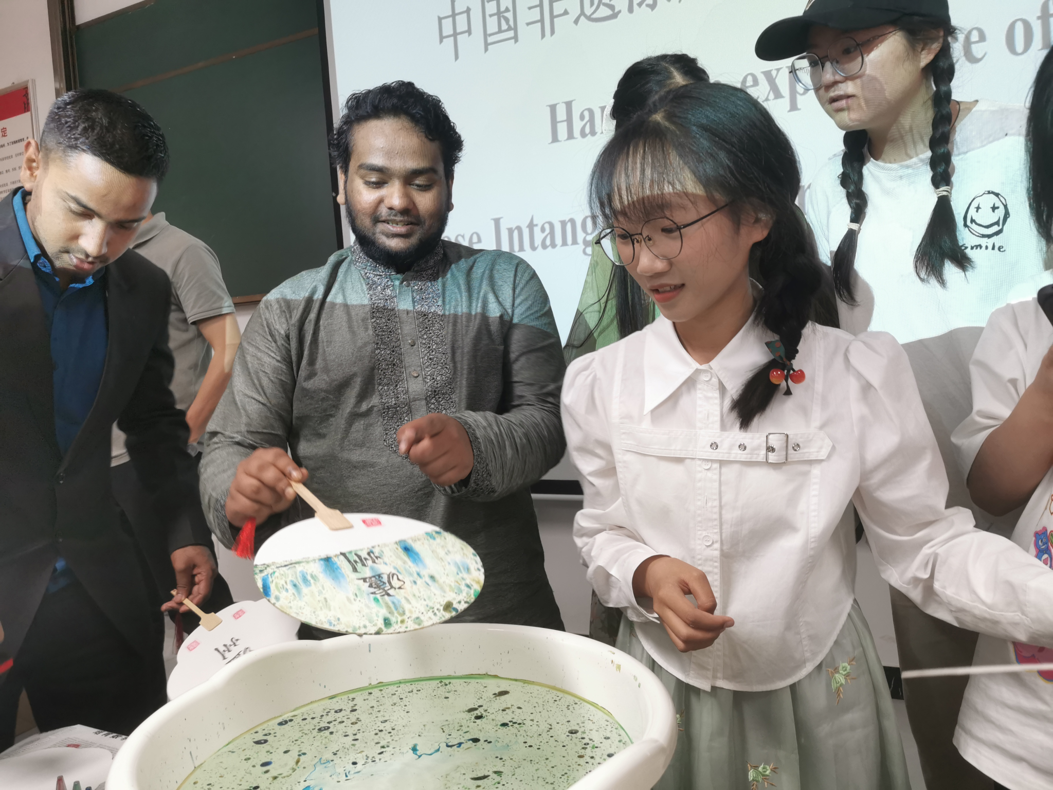 5月24日,国际教育学院在文渊楼101举办了一场别开生面的“千年古韵 风雅华夏”中国非遗漆扇文化分享与体验活动。本次活动是学校首届国际文化周系列活动之一,以漆为媒,以扇为纸,旨在让中外学生深入了解中国传统文化,感受非物质文化遗产的魅力。国际教育学院、外国语学院师生约70人参加。