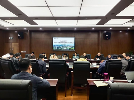 研究生院党总支书记朱小平作专题汇报,全面总结2024年研究生教育工作成果,系统部署2025年重点任务和本学期重点工作,为研究生教育内涵式、高质量发展锚定方向。朱小平就总支党建工作、研究生思政教育、学科建设与学位管理、招生就业、培养质量提升等工作做了细致的总结和部署。