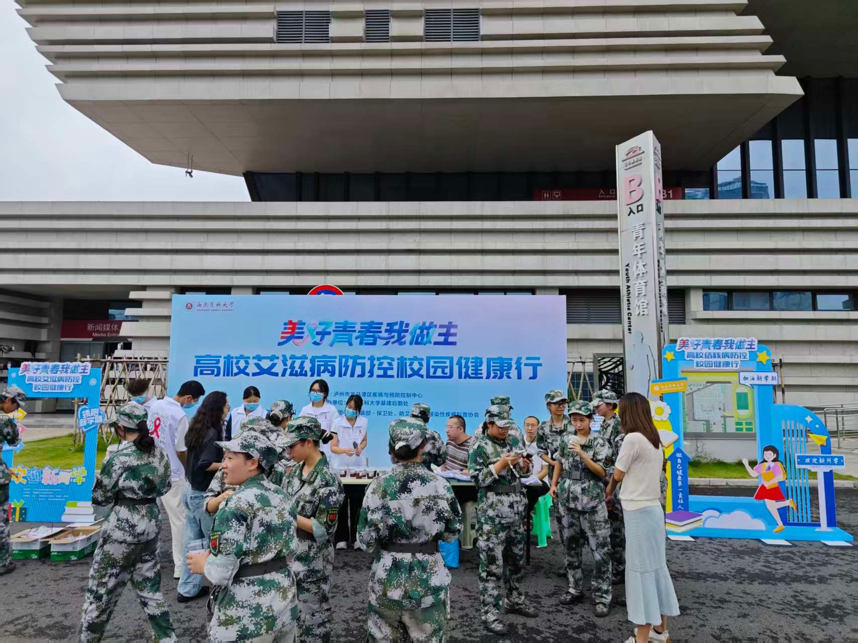 9月17日至19日,为进一步增强新生防控意识,基建后勤处联合龙马潭区疾控中心、校团委及保卫处,共同组织 “美好青春我做主,高校HIV防控校园健康行”主题宣传活动。活动现场通过展板展示、宣传手册发放、有奖问答等形式,向新生普及HIV、流感、肺结核、诺如病毒等常见传染病的防控知识。基建后勤处校医院还精心熬制酸梅汤,既满足军训防暑解渴需求,也传递健康关怀。校合唱团以快闪形式演唱《骄傲的少年》《海阔天空》,将现场气氛推向高潮。新生们纷纷表示,活动形式生动有趣,在轻松氛围中掌握实用防控知识。
