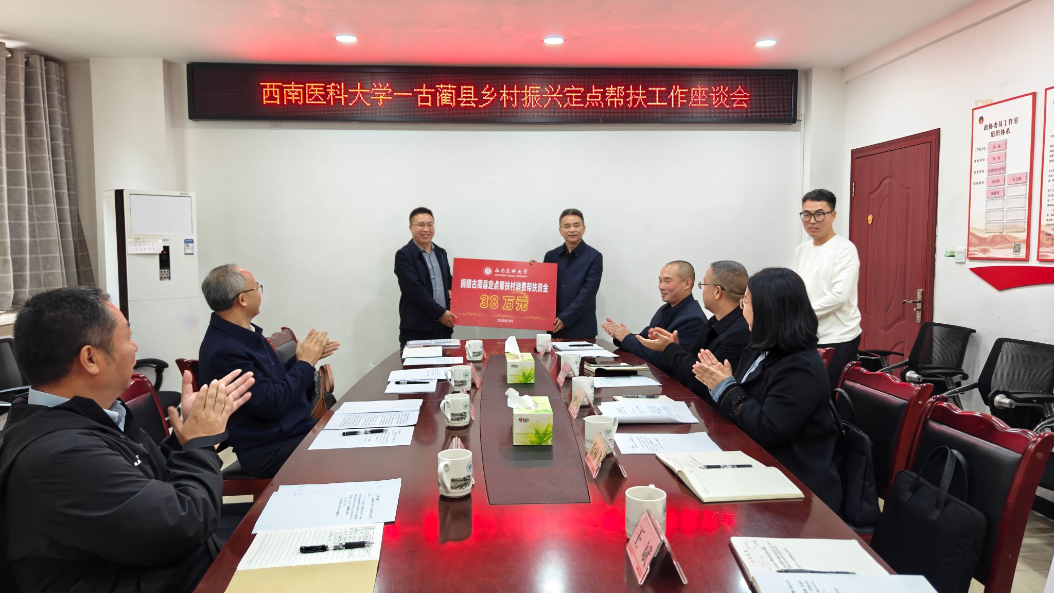 校地双方在镇政府召开定点帮扶座谈会。学校派驻红光村第一书记侯杰荣详细汇报驻村工作进展、面临的机遇和挑战。会上举行捐赠仪式,蒋通荣代表学校向古蔺县捐赠消费帮扶资金38万元,柏珂代表学校捐赠产业发展基金10万元。双方围绕德耀镇发展深入讨论,共同探寻破解发展难题的有效对策。