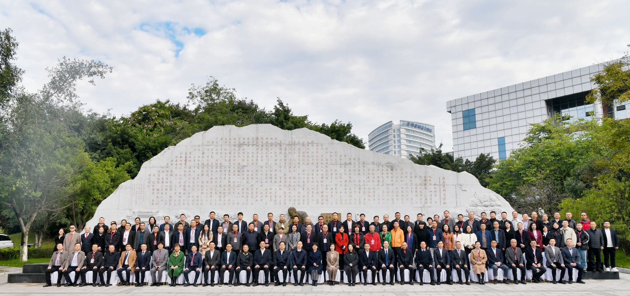 大会在激昂的校歌声中落幕,全体参会人员合影留念,定格美好瞬间。