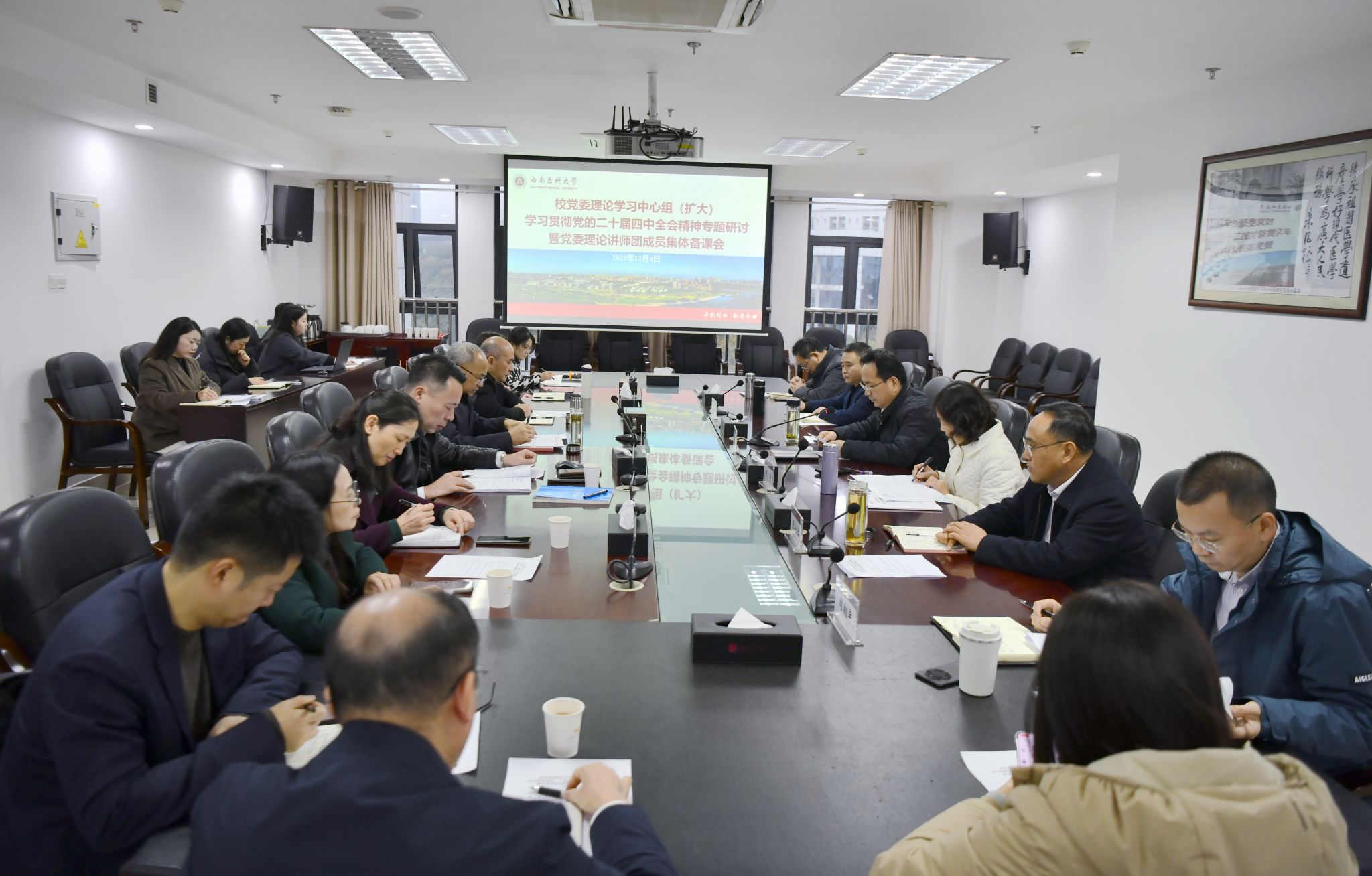 12月4日上午,学校党委理论学习中心组(扩大)学习贯彻党的二十届四中全会精神专题研讨暨党委理论讲师团成员集体备课会在德诚楼621会议室举行。全体校党委理论学习中心组成员、校党委理论讲师团成员参加会议。会议由校党委书记张春祥主持。