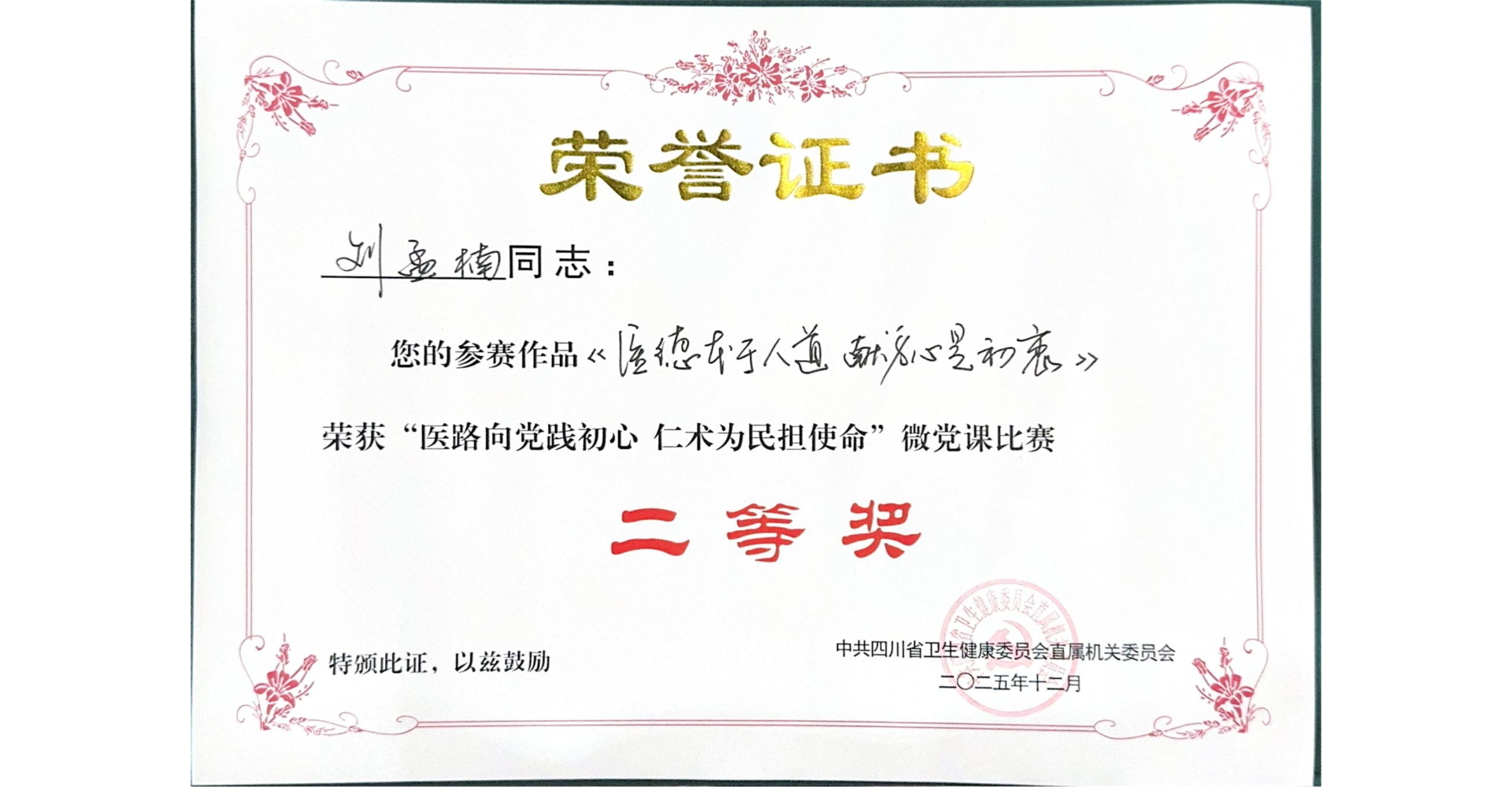 学校附属中医医院心血管内科党支部刘孟楠荣获四川省卫生健康委员会微党课评比活动二等奖