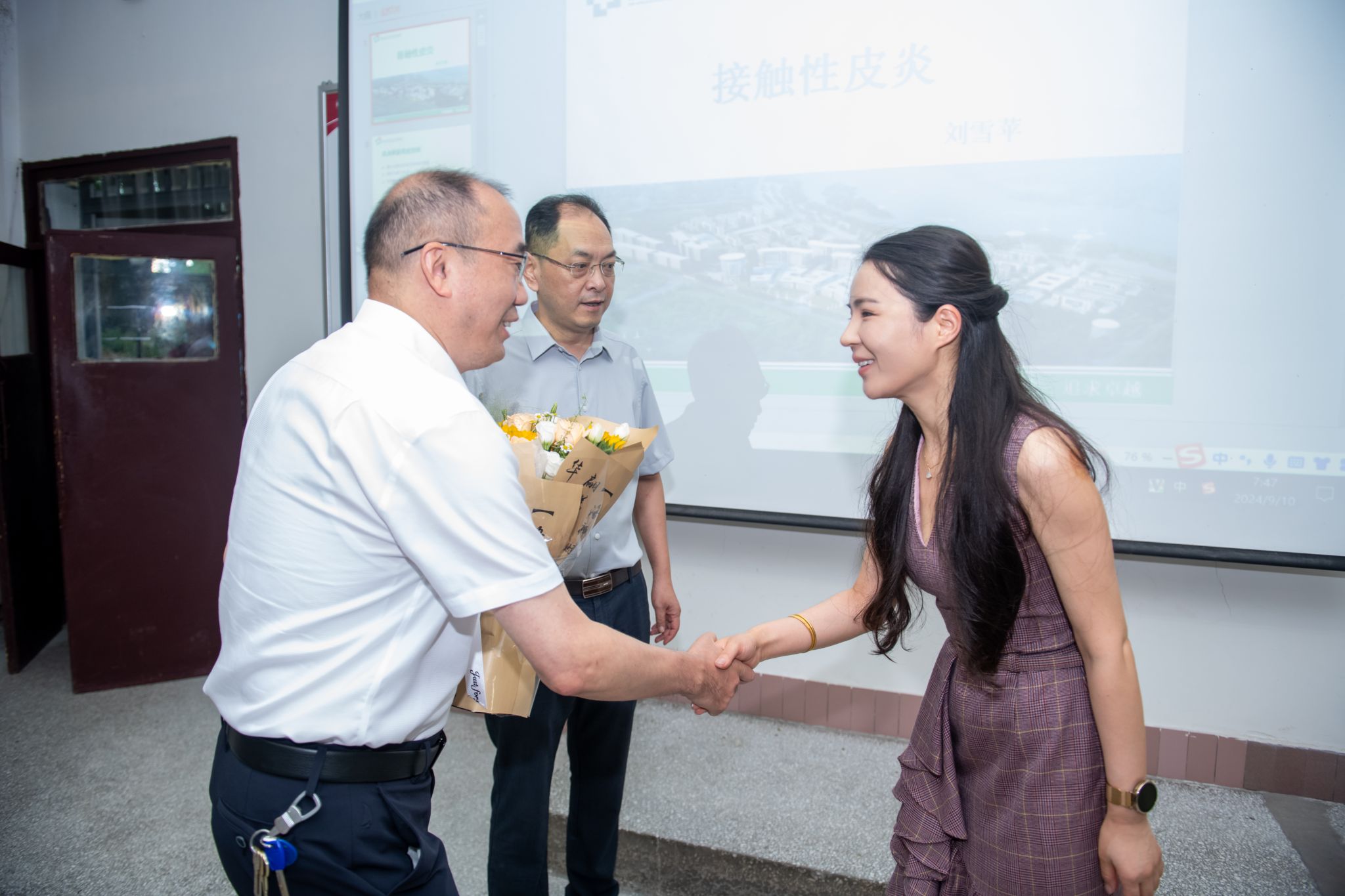 910日上午,jdb电子游戏官方网站附属医院党委书记徐勇,党委副书记、工会主席黎靖代表医院前往教学楼,对部分在高温天气下坚持线下授课的教师进行了亲切慰问。慰问过程中,徐勇、黎靖向授课教师赠送了鲜花,并代表医院向全体教师致以节日的问候和祝福,希望教师们继续发扬优良传统,不断创新教学方法,为培养更多优秀的医学人才贡献力量。同时,他们也表示,医院将一如既往地关心和支持教师的工作与生活,为大家创造更好的教学环境和条件。