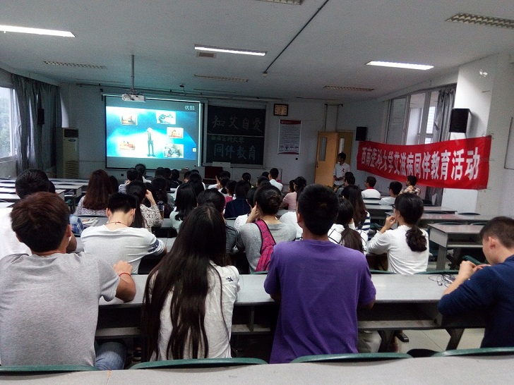 为了进一步宣传普及艾滋病防治知识,提高大学生艾滋病知识的知晓率,根据《jdb电子游戏官方网站艾滋病防控工作试点实施方案》要求,结合泸州市“高校防艾联盟”2016年工作安排,5月13日晚,在城北校区明理楼201教室举办了以“知艾,自爱”为主题的艾滋病同伴教育活动,各院系学生会主席及“防艾”协会志愿者代表约50人参加了活动。