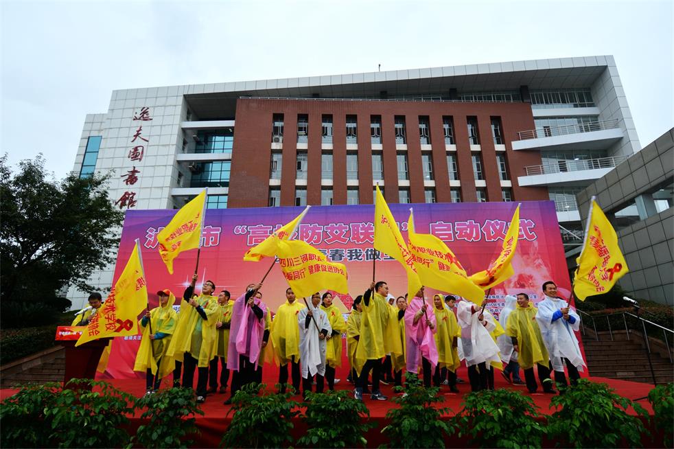 在启动仪式现场,出席仪式的领导向四川医科大学、四川警察学院、四川化工职业技术学院、泸州职业技术学院、四川三河职业技术学院、泸州广播电视大学、泸州职业技术学校等7所大学及中职院校的志愿者代表授予“泸州高校防艾联盟”会旗。