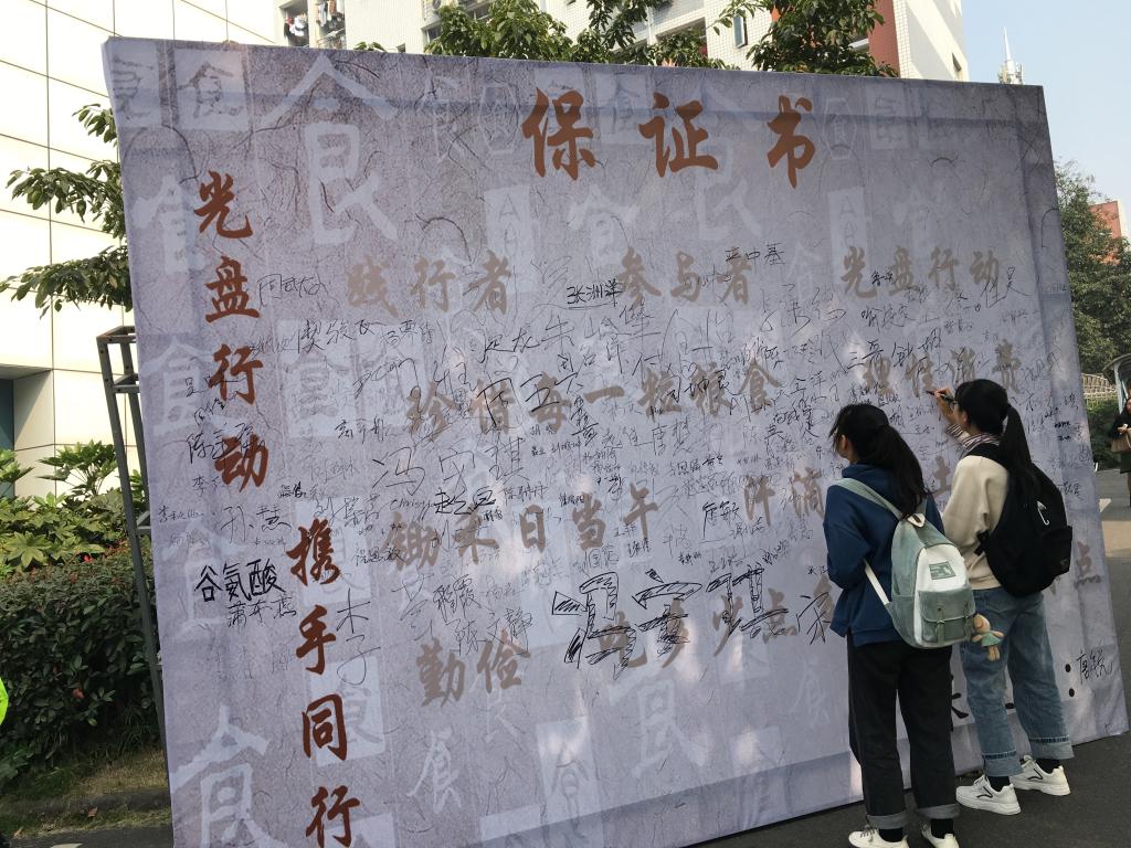 活动以“拒绝剩宴,厉行光盘”为主题,涵盖节约粮食主题宣传、厨王争霸赛、学生面团大赛、光盘行动签名及知识抢答等内容。比赛现场气氛非常浓烈,来自5个食堂10名优秀厨师进行了鱼香肉丝、土豆丝和特色菜的团体和个人;创意面团大赛展示了同学们敢想、敢做和积极的乐观精神。经过评委们认真评选,来自粒香苑一楼的梁儒国获得厨王争霸赛个人一等奖,桂香苑一楼获得厨王争霸赛团体赛一等奖,胡今娇等获得学生创意面团大赛一等奖。