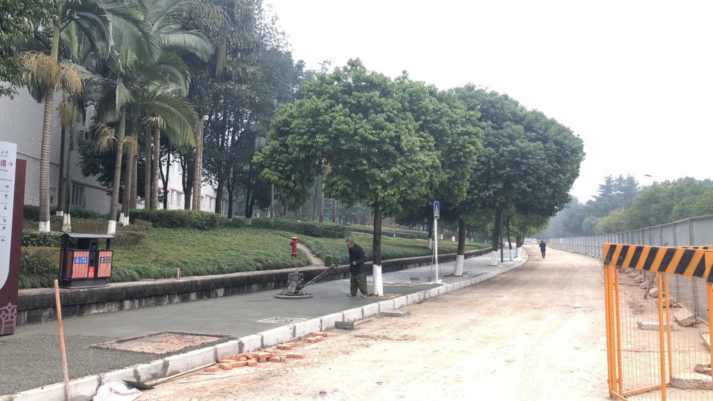 施工过程中,基建后勤处督促施工单位落实施工安全责任,做好施工质量管控,严格执行安全文明施工规范,充分考虑校内人流、车流大的特点,做好打围、施工告知、夜间临时照明、安装道路减速带等安全措施。按照施工技术规范对材质、透水砼配合比、预埋过街管道埋深进行严格把控,既做足了“面子功夫”,也打好了“内部根基”。该工程预计2021年3月春季开学前竣工。