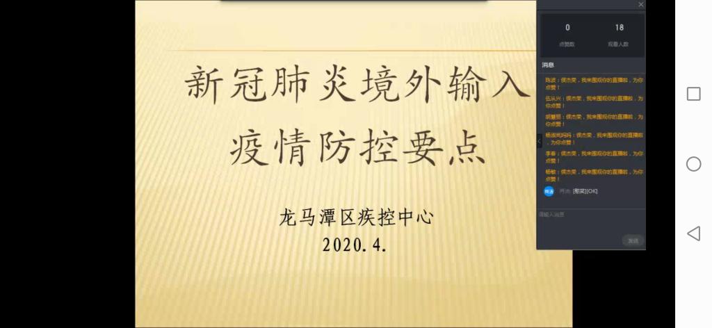 本次培训采用钉钉网络直播模式进行,龙马潭区疾病预防控制中心的防控专家以境外疫情输入防范、无症状感染者管理、病媒生物防治等为重点对当前疫情防控重点任务和季节性传染病防控进行了全面讲授。