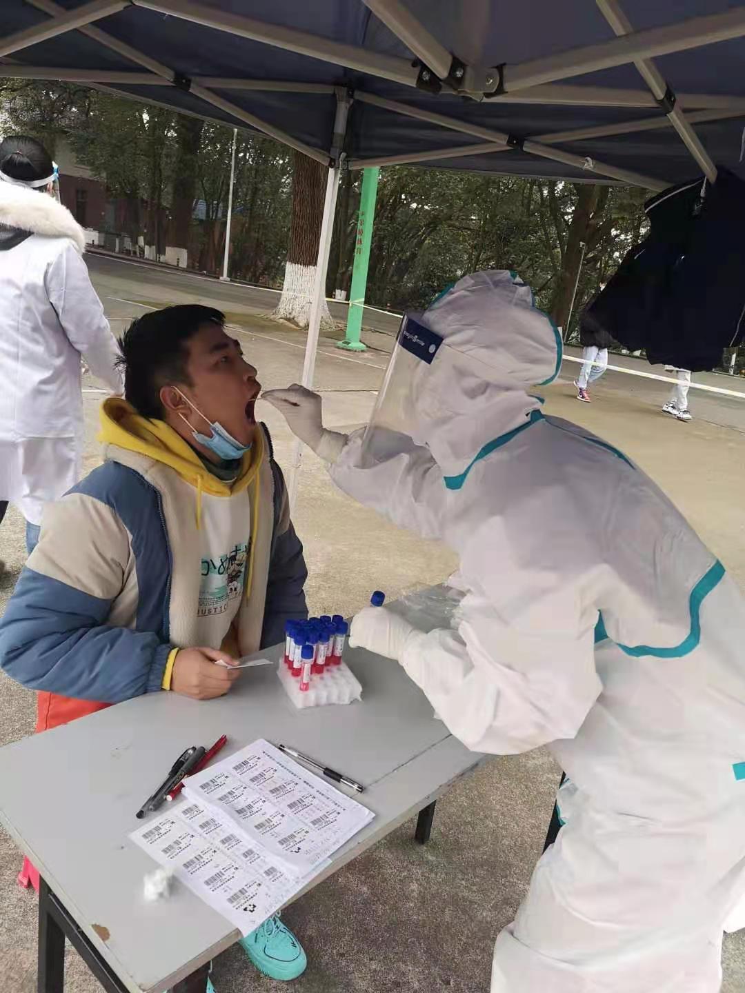 本次核酸检测成立了名单收集组、核酸采样组、条码打印组、后勤保障组、秩序维护组等工作小组。各组分工明确,提前做好通知学生错峰采样、名单收集、条码打印和物资准备等工作。采样当天,学生戴好口罩间隔一米排队、测体温、登记、采样、送检等工作井然有序,学生即采即走。据统计,当日城北校区完成采样575人次,忠山校区完成采样349人次,两校区均提前圆满完成了采样任务,学校附属医院及附属中医医院将于28日上午为学生们出具核酸检测结果。