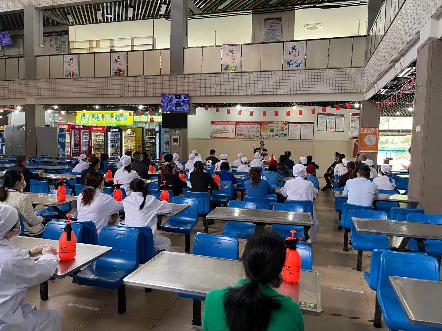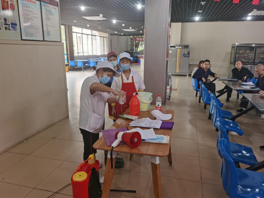 为进一步做好学校常态化的疫情防控工作,让干部职工克服麻痹思想和松劲心态,4月26日下午,基建后勤处在桂香苑食堂一楼组织召开了一次消毒防疫技能知识专题培训会,培训会由基建后勤处副处长刘平主持,学校食堂、学生公寓和物业管理公司约30余名消毒人员参加了培训。