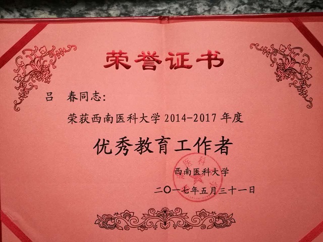 吕春同志荣获jdb电子游戏官方网站2014-2017年度优秀教育工作者称号