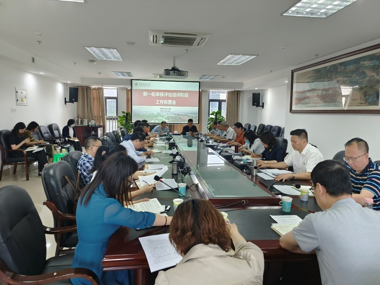 会上,赵琼从审核评估历史出发,详细介绍了新一轮审核评估工作方案、指标内涵解读、审核评估重点、工作进展以及后期工作部署。各二级院系及相关职能部门就本单位审核评估工作开展情况,存在的问题和困难进行汇报。随后,赵琼详细介绍了审核评估工作任务表,并征求各单位意见。