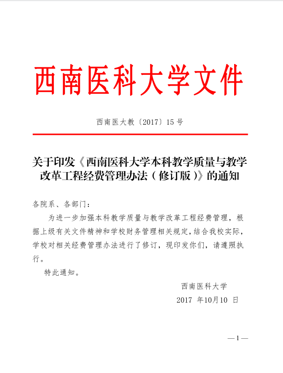 西南医大教〔2017〕15号 《jdb电子游戏官方网站本科教学质量与教学改革工程经费管理办法(修订版)》.pdf