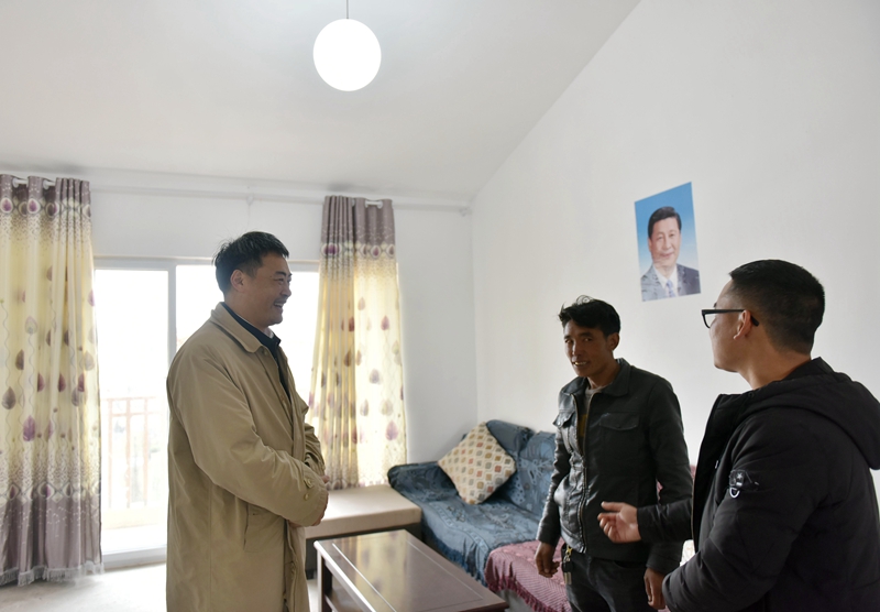 走进15栋2号楼601室,海来拉日一家洋溢着幸福的笑容,连忙招呼大家落座。干净的水泥地面,整洁的沙发,统一配置的厨具以及洗衣机,这是金野以匹村贫困户海来拉日的新家,他今年4月26日搬到了这里。廖斌和海来拉日在沙发上坐着唠起了家常,“你们家里人身体怎么样?今年有信心脱贫吗?住在这里买东西方便吗?”一问一答,让人很是温暖。
