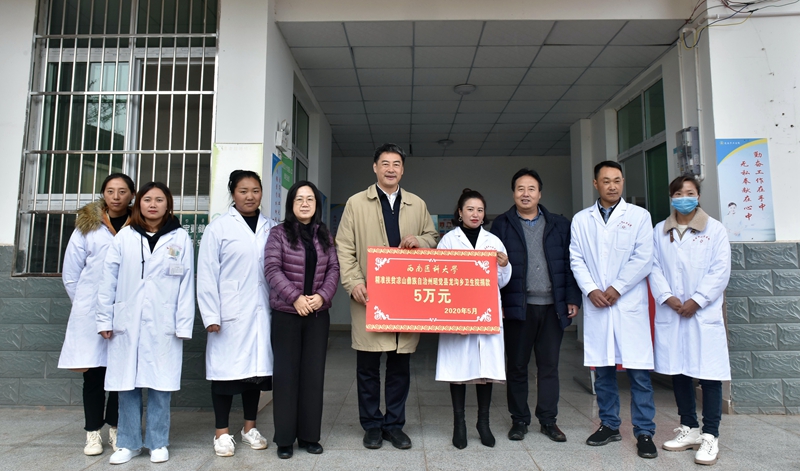 座谈会后,廖斌一行在昭觉县相关领导的陪同下,赴龙沟乡进行实地考察。在龙沟乡人民政府举行了帮扶捐助仪式,学校向昭觉县龙沟乡金野以匹村捐赠了65万元。在龙沟乡中心学校,向该校捐赠了15万元,用于改善办学条件;同时举行了“育蕾基金”发放仪式,7名教师,80名同学获得奖励。在龙沟乡卫生院,看望了医疗人员,了解他们的工作生活情况,并向卫生院捐赠5万元用于改善医疗条件。