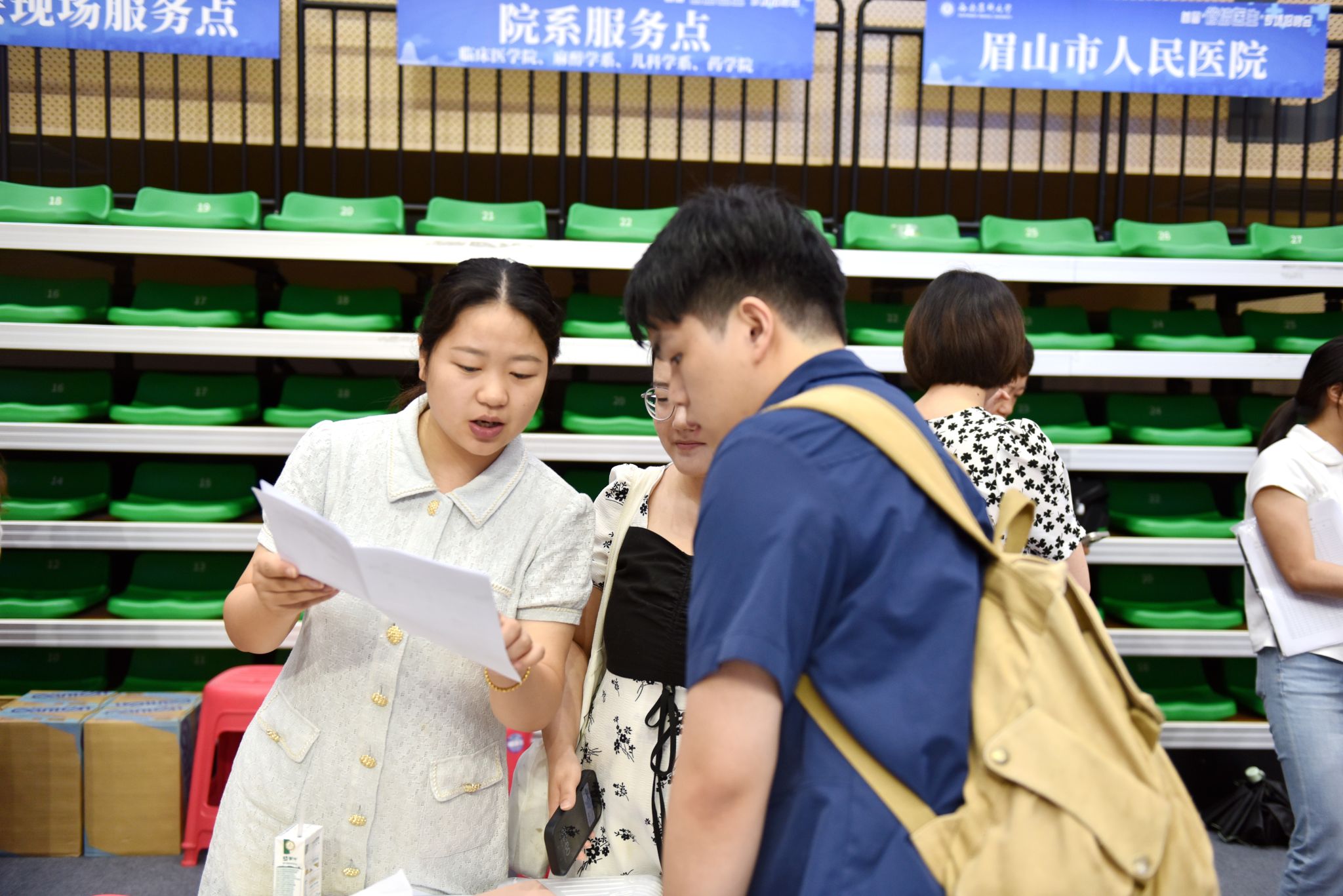 四川省教育厅就业指导中心副主任何苗、四川省医学科技教育中心副主任邱赞、泸州市人才交流中心主任李智伟、眉山市卫生健康委员会人事科科长胡燕莅临现场指导,学校党委书记廖斌,党委副书记、校长张春祥,党委常委、副校长何涛,党委常委、副校长代荣阳出席启动仪式。代荣阳主持启动仪式。