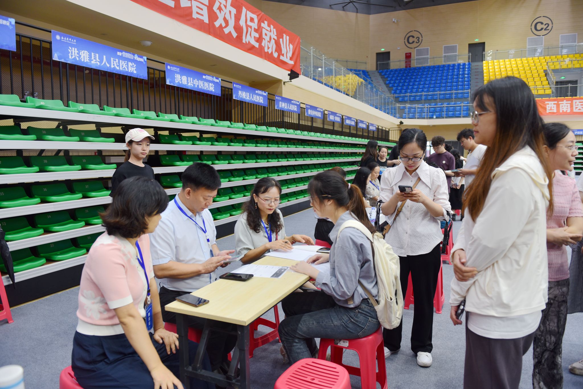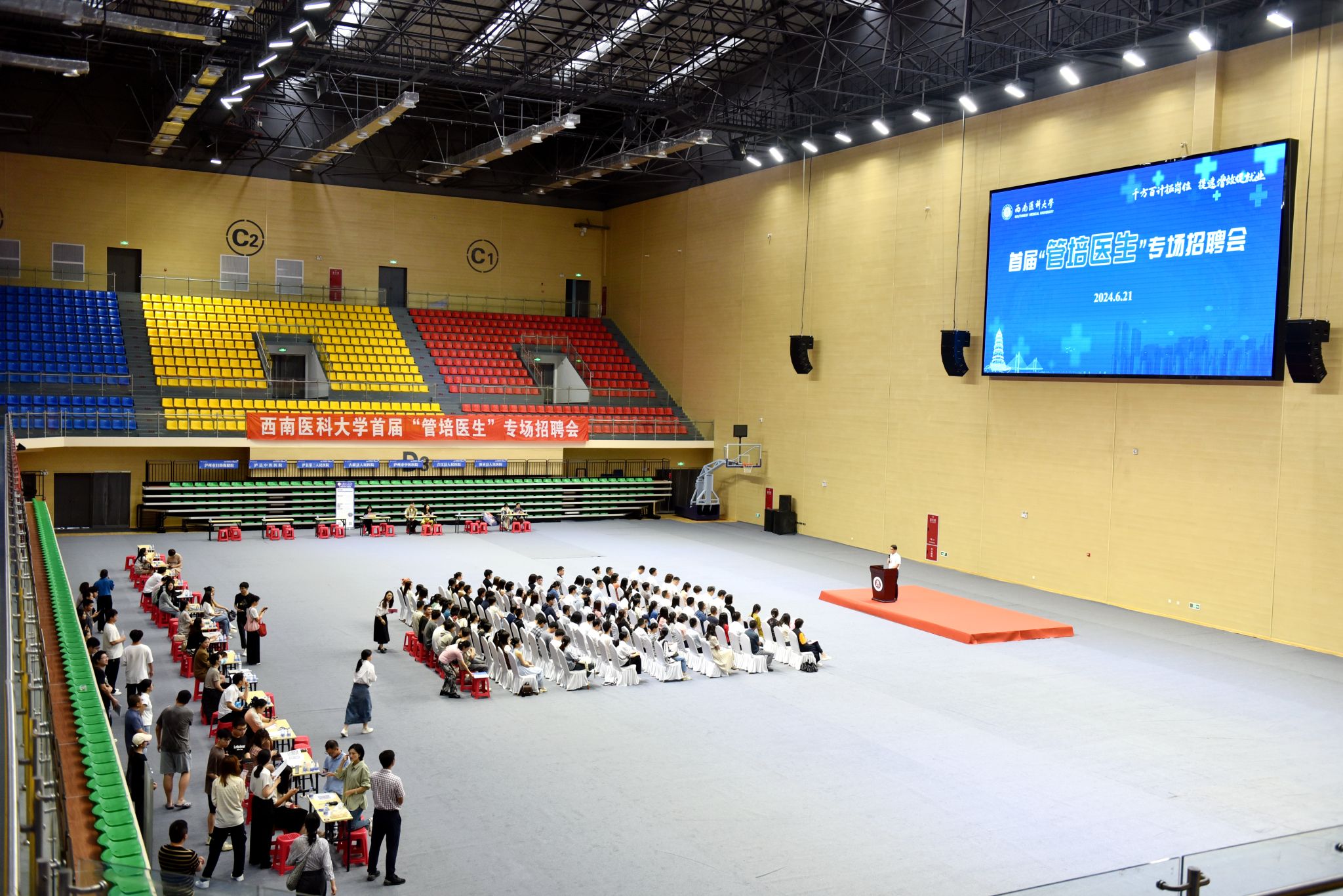 6月21日上午,学校在城北校区青年体育馆举办首届“管培医生”专场招聘会。招聘会包含启动仪式和现场招聘两个环节,省内外28家医院的招聘人员和jdb电子医学类专业300余名2024届本科毕业生到场参加。