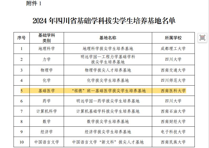 11月1日,四川省教育厅公布2024年四川省基础学科拔尖学生培养基地名单,jdb电子基础医学院申报的“‘祖德’班—基础医学拔尖学生培养基地”获批。