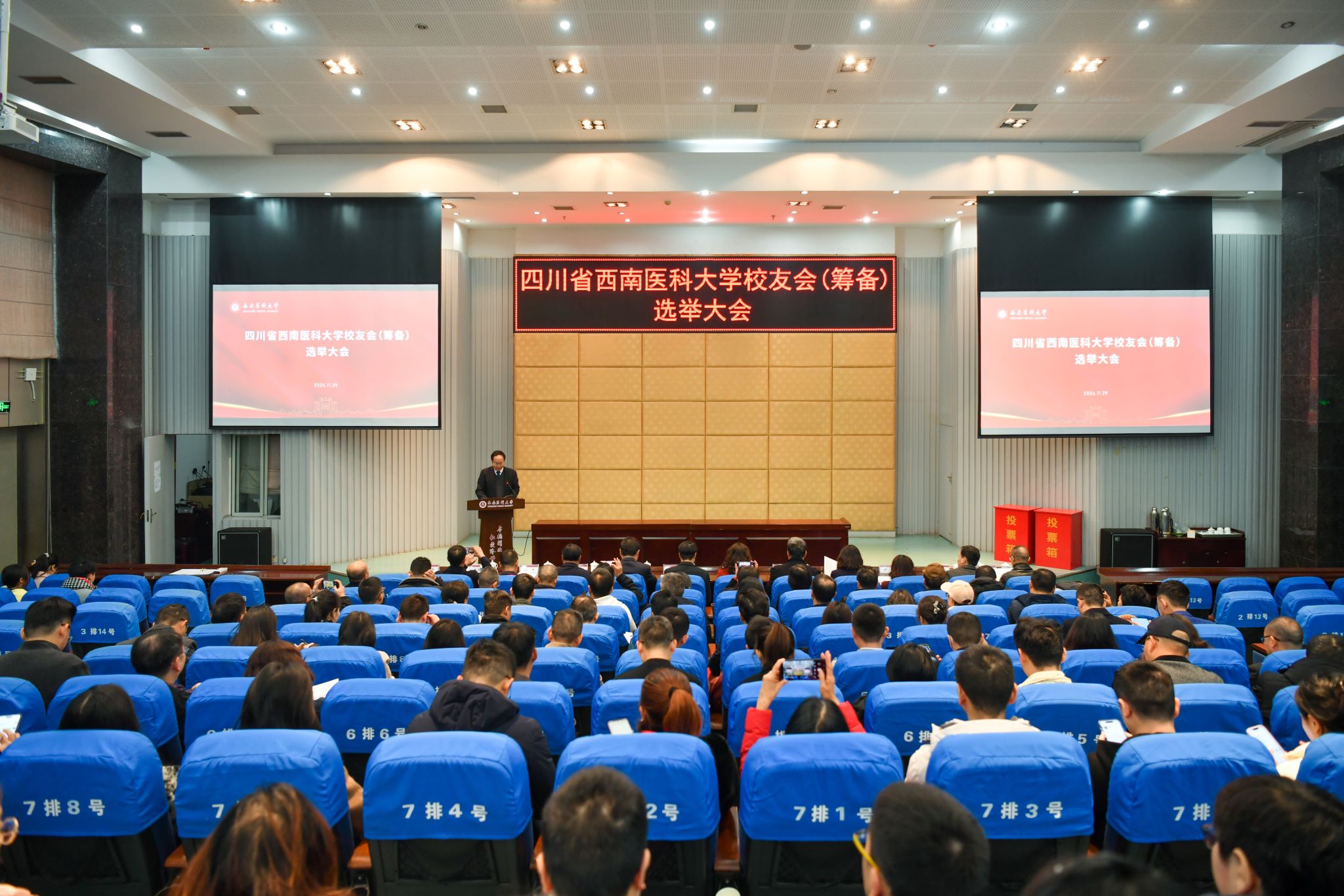 2024年11月29日,学校在城北校区第二学术报告厅举行了四川省jdb电子游戏官方网站校友会(筹备)选举大会。四川省教育厅政策法规与综合改革处四级调研员孙红,四川省民政厅政策法规处一级主任科员李方祥,学校党委书记、校友工作领导组组长廖斌,党委副书记、校长、校友工作领导组组长张春祥,党委副书记、校友工作领导组副组长刘毅,党委副书记、纪委书记、校友工作领导组副组长张永红,党委常委、副校长、校友工作领导组副组长何涛,以及四川省各地市州校友、校内相关单位负责人、各学院分管校友工作领导出席大会。大会由学校党委常委、副校长、校友工作领导组常务副组长聂敏海主持。