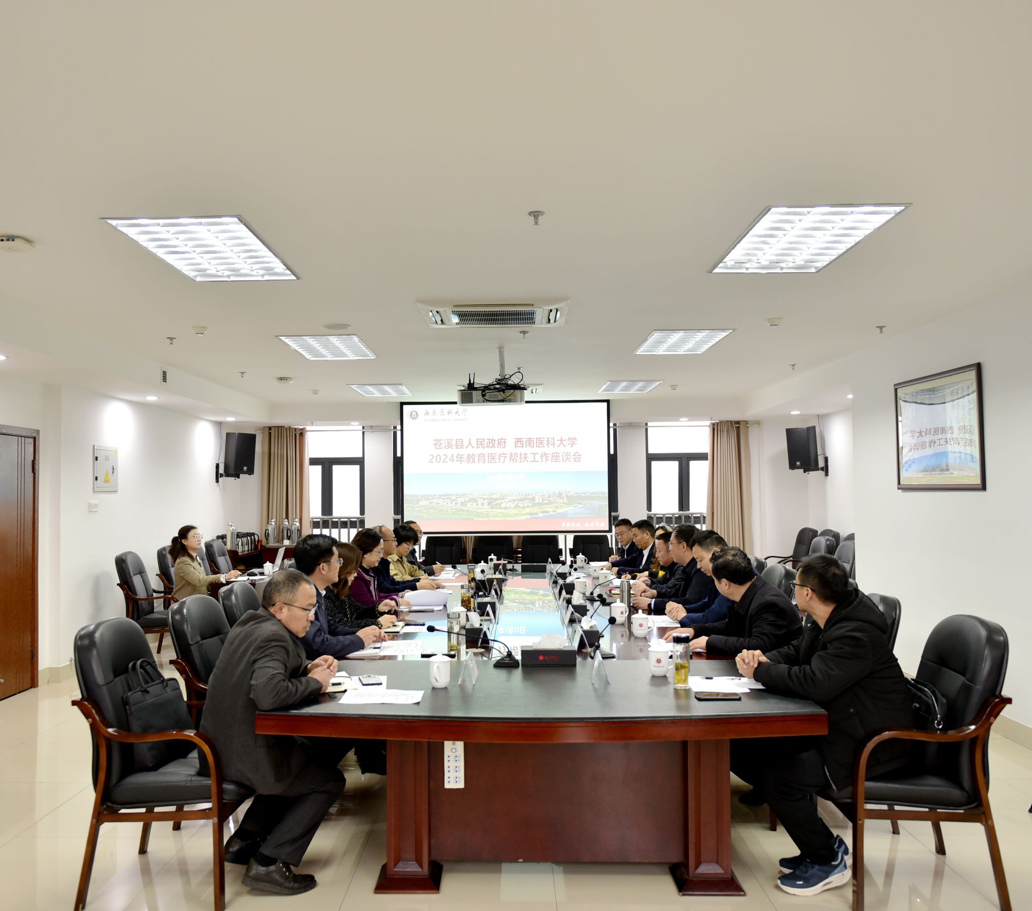 3月20日,广元市发改委副主任、泸州市结对帮扶苍溪县前方指挥部指挥长陈云强,苍溪县人民政府副县长周胜华一行到jdb电子对接教育医疗帮扶工作。校党委副书记、工会主席刘毅,党委常委、组织部部长柏珂参加座谈交流。