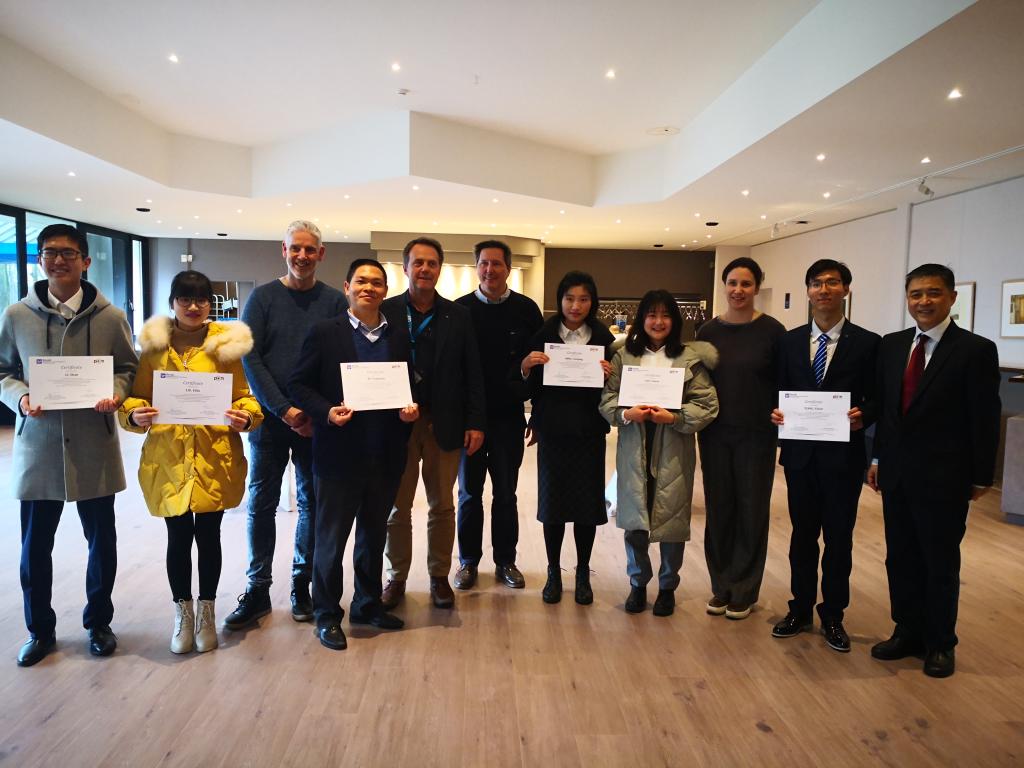 在15天的交流学习中,学习交流团与比利时学生一起学习,体验了安特卫普大学医学院PT(物理治疗)专业本科和硕士研究生阶段课程,包括肌骨康复、疼痛康复、神经康复、老年心肺康复及运动康复等,了解了比利时康复医学PT专业的课程设置和培养体系,同时参访了该大学医院(UZA)康复医学科。在最后课程的结业仪式中,jdb电子师生代表用英语展示了这半个月的游学感悟,并由安特卫普大学医学院院长Guy Hubens教授授予结业证书。