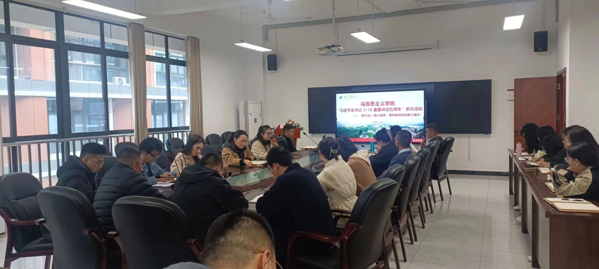 高校思想政治理论课教学一定要做到有精度,有深度,有高度,要展现这门课的理论魅力,让学生真心喜欢思政课。3月18日下午,jdb电子游戏官方网站马克思主义学院“纪念习近平总书记3·18重要讲话发表五周年”系列活动——“道不远人 薪火相传”第三期青年教师综合能力培训在文渊楼432会议室举行。培训会由马克思主义学院院长黄晓利主持。