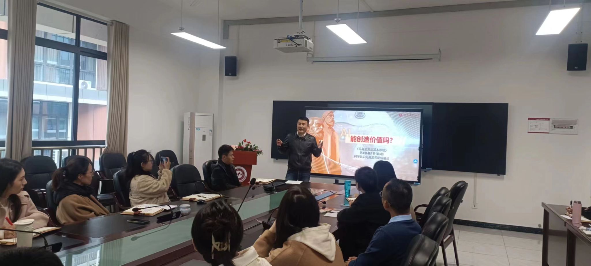 本次优质课示范邀请学院教学三部优秀青年教师、四川省《马克思主义基本原理》教学研究会教学竞赛特等奖获得者县祥博士作教学经验分享。县祥以《AI能创造价值吗?》为题,通过前沿案例、经典理论作《原理》课程示范教学,并向青年教师们分享自己的备赛经验。他谈到,要从自己的教学经历出发,告诫教师们要在学思践悟上下功夫,鼓励青年教师热爱自己的专业,引导学生从“学校要我学”到“我要主动学”的思想转变。大家纷纷表示,此次优质课示范很有收获,教学经验分享实用性强,收获满满。