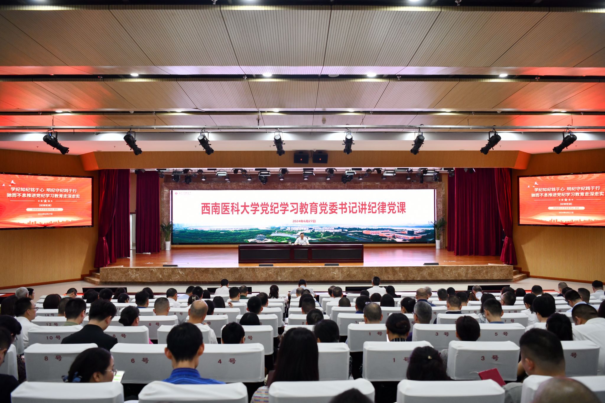 6月27日下午,学校党委书记廖斌在城北校区第一学术报告厅为学校党员干部讲授纪律党课。学校全体校领导,处科级领导干部,党委组织部、人事处、国有资产管理处、财务管理处、基建后勤处全体党员等共计300余人聆听了此次党课。