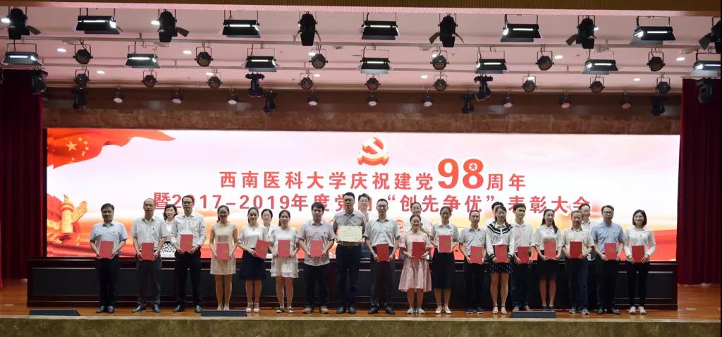 6月27日下午,jdb电子游戏官方网站庆祝建党98周年暨2017-2019年度党内“创先争优”表彰大会在城北校区第一学术报告厅举行。全体校领导,处科级干部,校本部教研室(实验室)主任,支部书记,三附院两办、学生科、教务科、研究生科负责人,各类受表彰人员等参加了大会。