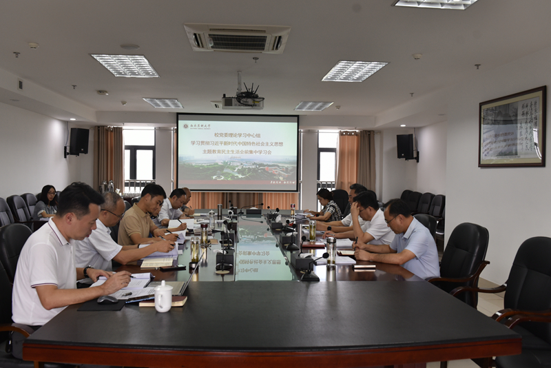8月22日,校党委理论学习中心组在德诚楼621会议室召开学习贯彻习近平新时代中国特色社会主义思想主题教育民主生活会前集中学习会。校党委书记、中心组组长廖斌主持会议。