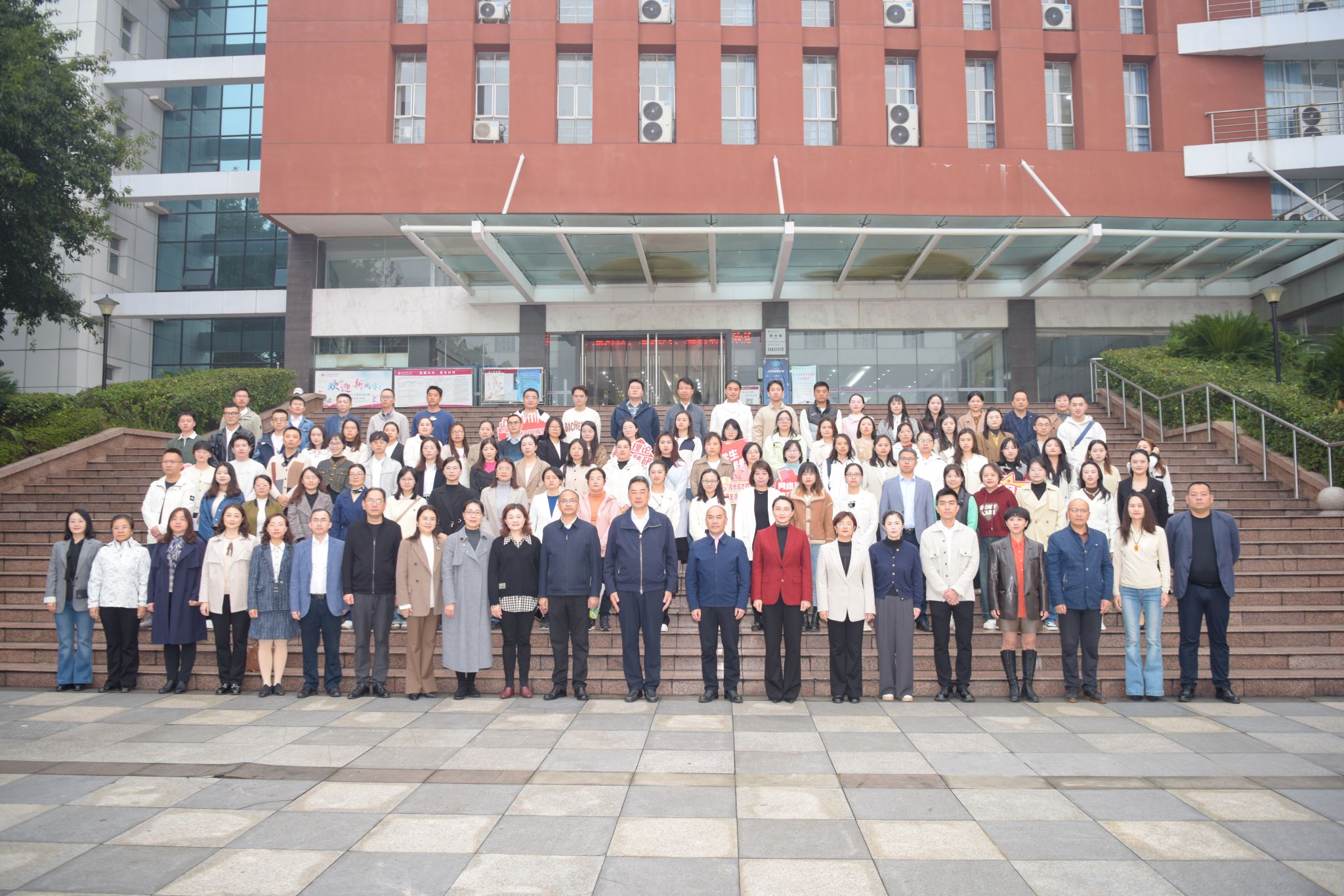 随后,全体参赛辅导员在逸夫图书馆门前进行集体宣誓并合影留念。