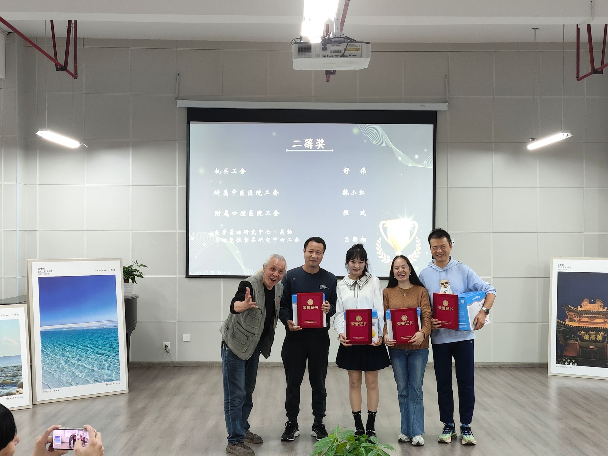 活动中,刘剑对本次比赛的获奖作品进行了精彩赏析。他逐一介绍了获奖作品的亮点与特色,让与会人员深刻感受到了摄影艺术的魅力。领导及嘉宾为获奖教职工颁发了荣誉证书及奖品。获奖教职工们纷纷表示,此次摄影比赛不仅为他们提供了一个展示才华的平台,更激发了他们对摄影艺术的热爱与追求。