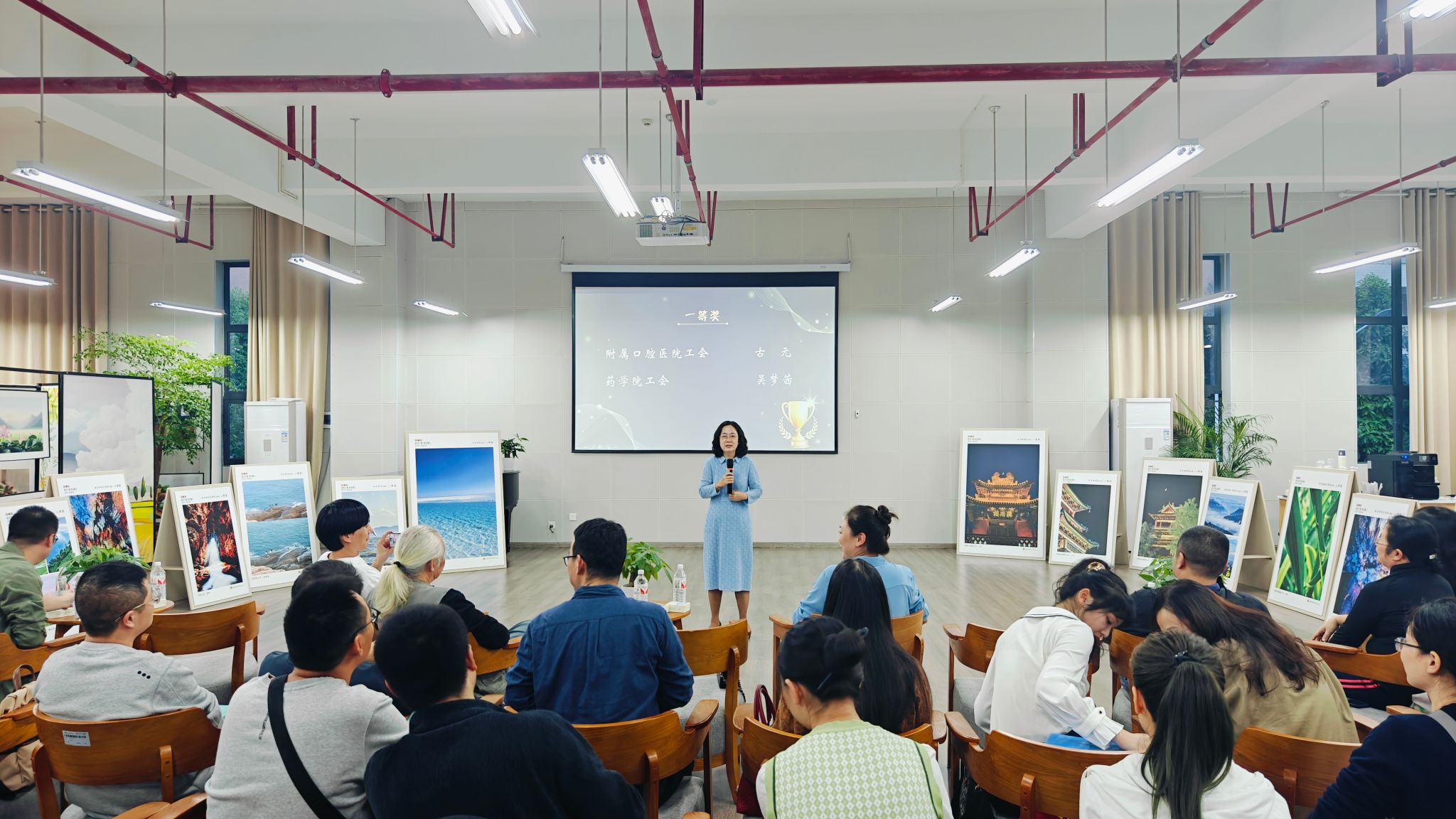 刘毅对著名摄影师、画家王伟老师表达了感谢,对获奖的教职工表示了祝贺,对工会举办此项活动给予了高度认可。她在总结讲话中指出,摄影是一门独特的艺术,它不仅能够定格瞬间、记录美好,更能够传递情感、启迪心灵,希望大家继续发扬热爱艺术、追求卓越的精神,用镜头去捕捉更多的美好瞬间,用作品去传递更多的正能量,希望工会继续为教职工们提供更多追求艺术之美、展示自我风采和相互交流学习的机会和平台,共同营造更加丰富多彩的校园文化氛围。