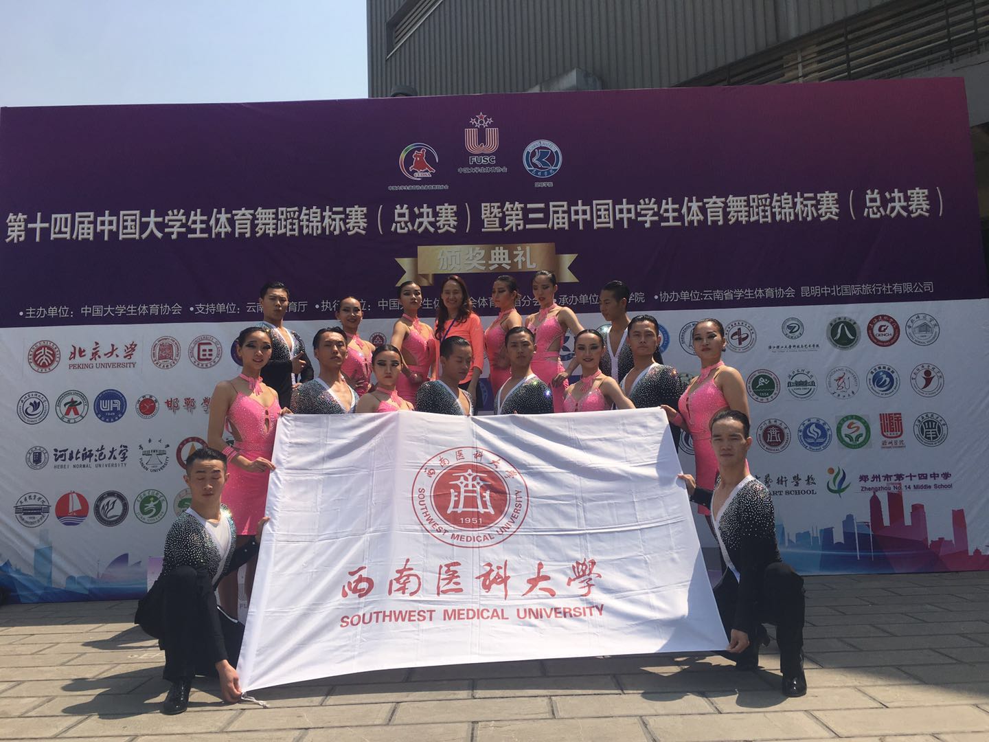 5月10日—13日,第十四届中国大学生体育舞蹈锦标赛总决赛在云南昆明举行,该赛为中国大学生体育舞蹈领域最高级别的赛事。jdb电子选派的体育舞蹈专选班20名同学与来自清华大学、北京大学、北京体育大学、上海体育学院等70余支队伍同场竞技,取得集体舞两个第三名,个人赛全国前八名的好成绩,并被授予优秀组织奖。