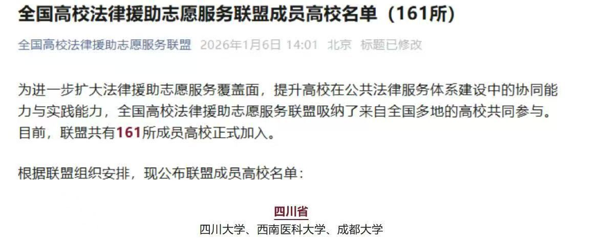 全国高校法律援助志愿服务联盟为进一步扩大法律援助志愿服务覆盖面,提升高校在公共法律服务体系建设中的协同能力与实践能力,吸纳了来自全国多地的高校。其中四川省共有3所成员高校正式加入。jdb电子以其扎实的法律援助工作基础和丰富的志愿服务经验成功入选。