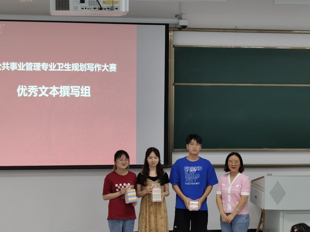 为提升学生的写作能力、推进人文与管理学院“三全育人”综合改革示范项目和省级一流课程《卫生事业管理学》实践育人建设,2023年4-6月,公共事业管理专业举行“卫生规划写作比赛”。