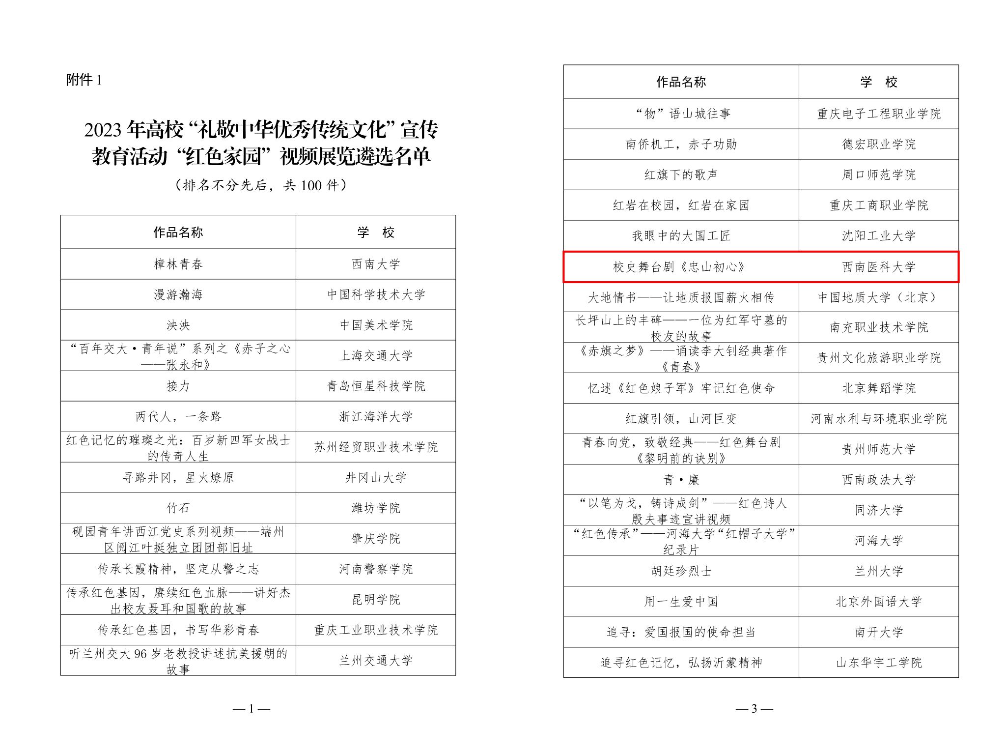 近日,教育部公布2023年高校“礼敬中华优秀传统文化”宣传教育活动结果,jdb电子报送的作品校史舞台剧《忠山初心》入选2023年高校“礼敬中华优秀传统文化”宣传教育活动“红色家园”视频展览遴选名单。据了解,全国共100项作品入选。