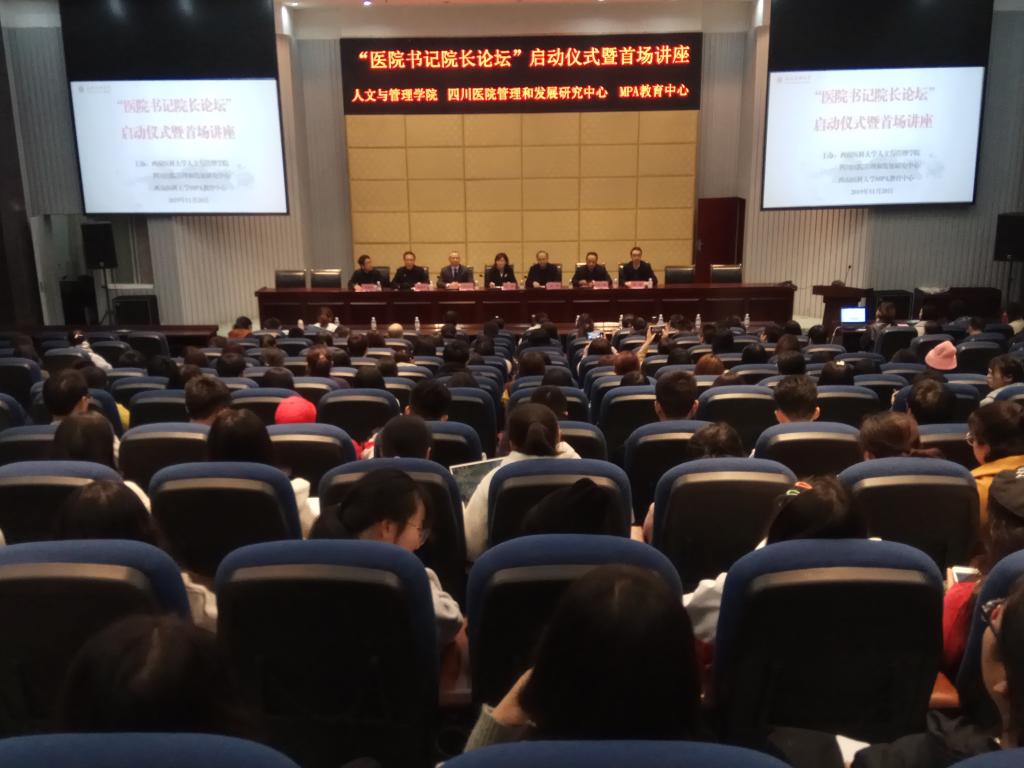 11月20日晚7点,由四川医院管理和发展研究中心、学校MPA教育中心、人文与管理学院共同举办的“医院书记院长论坛”启动仪式在城北校区第二学术报告厅举行。学校党委常委、副校长、四川医院管理和发展研究中心学术委员何涛,党委常委、宣传部部长柏珂,科技处处长龙汉安,临床医学院·附属医院党委副书记、院长杜一华,及人文与管理学院党政班子、师生代表等参加启动仪式,仪式由人文与管理学院院长赵成文主持。