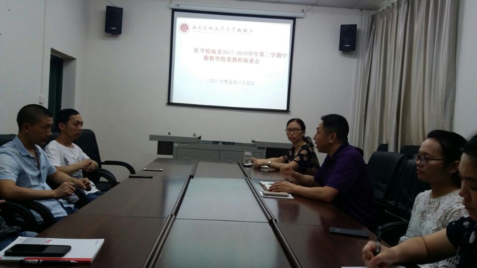 为配合学校开展2017-2018第二学期中期教学检查工作,听取教师对学校教学管理工作等方面意见,我系于5月25日下午三时在医学检验系会议室召开期中教学检查教师座谈会。参会人员由各教研室教师代表组成,会议由系主任陶华林主持。