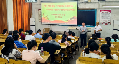 为深入学习习近平总书记关于党纪学习教育的重要讲话和指示精神,让全体党员学《条例》、守规则、知敬畏。5月13日下午,医学检验系党总支在忠山校区第十阶梯教室举办学《条例》守规矩知敬畏党纪学习教育,专题学习《中国共产党纪律处分条例》,本次活动由医学检验系党总支书记吕春主讲,医学检验系党总支所辖三个支部40余名党员参加。讲座由医学检验部党支部书记李光荣主持。