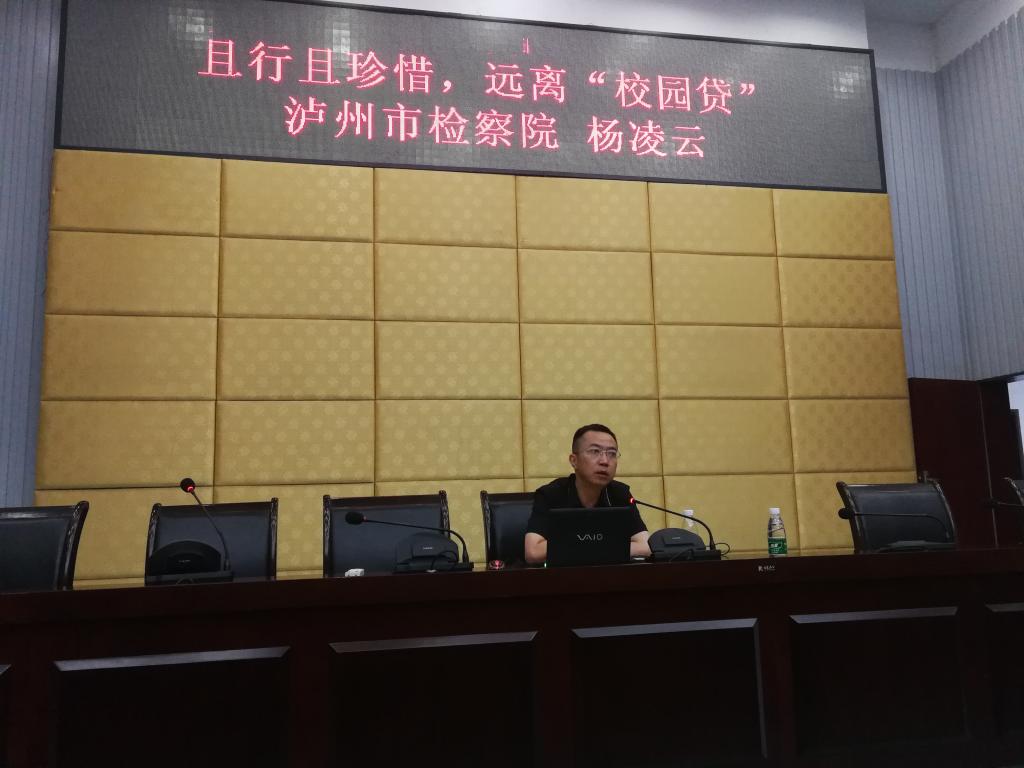 5月24日晚上,由保卫处与学生工作部共同举办的“且行且珍惜,远离‘校园贷’”专题讲座在城北校区逸夫图书馆学术报告厅举行。讲座邀请了泸州市检察院检察官杨凌云主讲,保卫处副处长杜杰主持了讲座。全校300余名师生代表现场聆听了讲座。