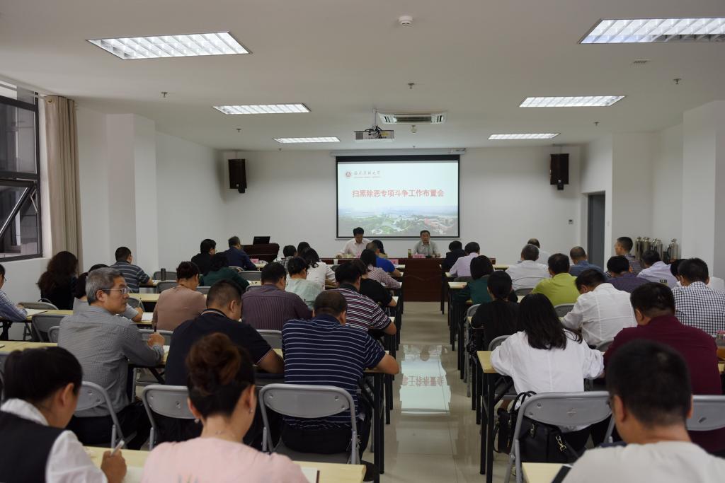 为贯彻落实党中央、国务院《关于开展扫黑除恶专项斗争的通知》精神和省教育厅、泸州市相关文件精神,9月20日,jdb电子在德诚楼档案馆会议室召开了jdb电子游戏官方网站扫黑除恶专项斗争工作布置会。全体在家校领导、各党政后及教辅部门负责人、各二级院系党组织负责人、扫黑除恶专项斗争工作领导小组办公室成员参加了会议。会议由党委书记廖斌主持。